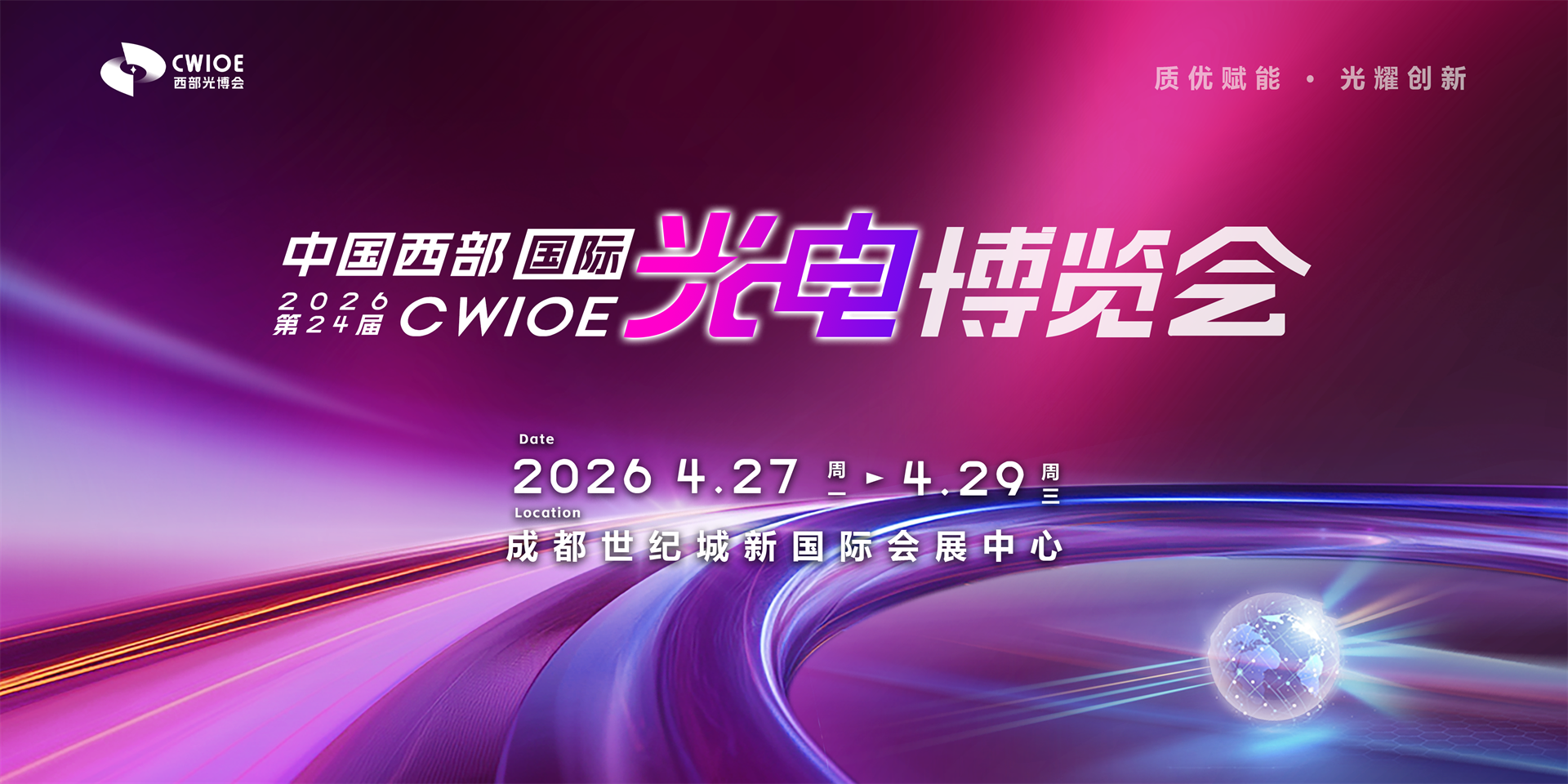 CWIOE2026以“質優賦能  光耀創新”為主題,定于2026年04月27日-29日在成都世紀城新國際會展中心舉辦,大會沿襲多年“展研結合”風格,本屆將舉辦2026第三屆中國西部光電產業創新發展論壇(主論壇),光學及光學制造創新發展論壇、第二屆西部省市光學學會聯誼會暨學術交流會,激光及激光應用創新發展論壇,智能傳感與機器人視覺創新發展論壇,紅外應用創新發展論壇,光電儀創新發展論壇,光通信與5G(F5G)創新發展論壇,智能觸摸屏創新發展論,LED新技術新設備交流會等內容豐富、前瞻實用的配套活動,同時舉辦成果展示、商務推介以及應用體驗等活動,以促進業內“產、學、研、用”的交叉融合和有效對接。